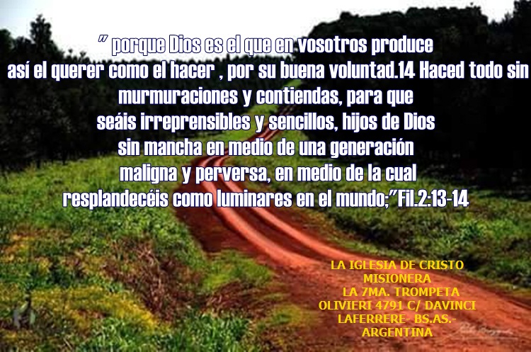Postdata:El autor da testimonio que recibiò una orden del Señor que es la de imprimir de manera casera (fuè el inicio),y entregar a todos los pastores,líderes y presidentes de ministerios y Organizaciones Evangèlicas en todo el mundo ,por ahora de habla hispana,sin costo,gratis el presente material ;lo cual lo estamos haciendo desde Setiembre del 2008;con mucho esfuerzo,algunas iglesias paraguayas colaboraron con poco o mucho a quienes el autor agradece a Dios,ademas de algunas firmas que euspiciaron cada ediciòn .Èste material està en InterneT en varios sitios web cuyas direcciones estàn dentro del Fascìculo ;ademàs estamos programando tener una TV y una radio por Internet;Nuestro objetivo es anunciar el inminente retorno de Jesucristo ;y nuestro mensaje se encuentra en Apoc. 14:7 "Teme a Dios y dale gloria ,porque la hora de su juicio a llegado ;y adorad a aquel que hizo el cielo ,y la tierra ,y el mar y las fuentes de las aguas..."